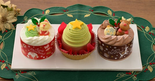 ▲左から 「コージープリンセスサンタ」 「クリスマスツリーケーキ」 「コージープリンセストナカイ」