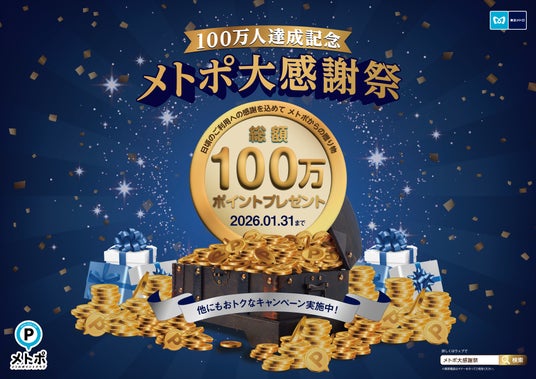 東京地下鉄株式会社(本社:東京都台東区 社長:小坂 彰洋、以下「東京メトロ」)は、メトロポイントクラブ(以下、「メトポ」)の会員数が100万人を突破したことを記念し、日頃よりご利用いただいているメトポ会員の皆様への感謝の気持ちを込めて、2025年12月5日(金)から2026年1月31日(土)まで、「メトポ大感謝祭」を実施いたします。