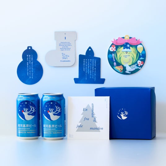 クリスマス特別仕様の赤鼻シール付き「銀河高原ビール 小麦のビール」を含むセットを、通販中心に数量限定で販売します。LINEギフトでは、「tupera tupera」とコラボしたメッセージカードもセットで販売予定です。また、宿泊施設「BEB5軽井沢 by 星野リゾート」(長野県軽井沢町)でも数量限定で販売します。※販売用セットにはオーナメント型メッセージカードはつきません。