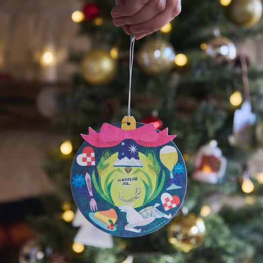 ▲オーナメント型メッセージカードは、グリーンランドの言語であるデンマーク語と日本語の二言語で記載