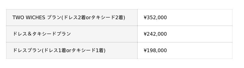 本フォトプランでは、<クラウディア>が手がける『WICKED|KURAUDIA』、そしてドレスブランド<SACHIKO TSUTSUI>による『WICKED|SACHIKO TSUTSUI』の2つのドレスコレクションをご着用いただけます。