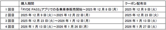 各クーポン配布日から、2026年2月15日(日)の運行終了時刻まで