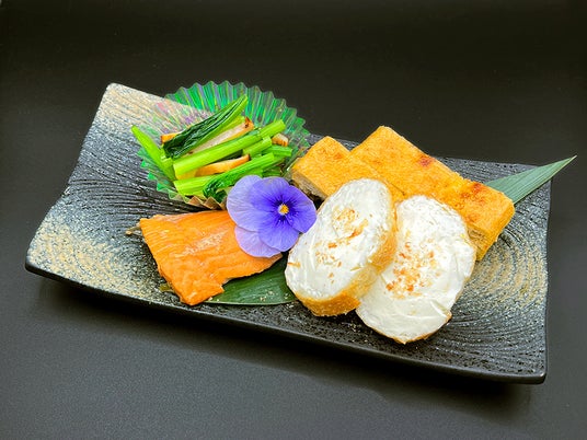 栃尾揚げ、鮭の焼漬など、おつまみ四種を詰め合わせた「おつまみボックス」付き。