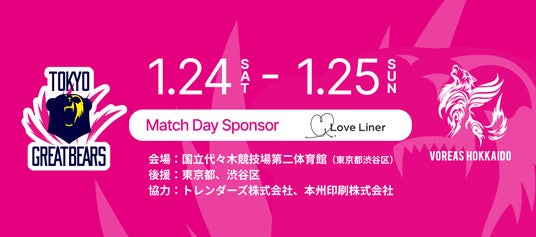 株式会社グレートベアーズ(本社:東京都渋谷区、代表取締役:久保田健司)は、2026年1月24日(土)、25日(日)に国立代々木競技場第二体育館にて開催される2025-26 大同生命SV.LEAGUE MEN 東京グレートベアーズ ホームゲーム ヴォレアス北海道戦において、東京グレートベアーズのオフィシャルパートナーであるmsh株式会社(協力:トレンダーズ株式会社、本州印刷株式会社)をマッチデースポンサーとして、ホームゲームを開催することとなりましたのでお知らせいたします。
