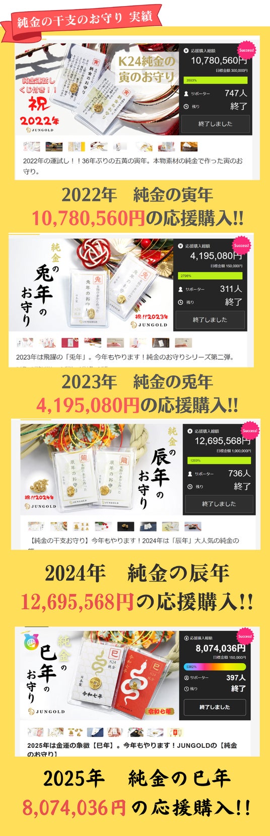 JUNGOLDの純金干支お守りは、以下の5年間で展開されてきました。