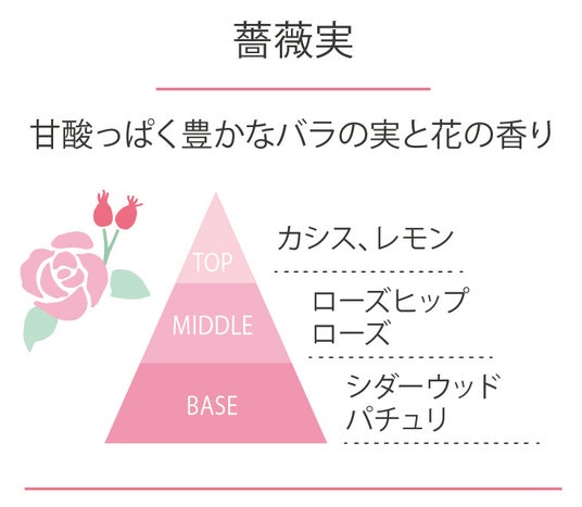 ・薔薇実保湿成分:ダマスクバラ花エキス、カニナバラ果実油