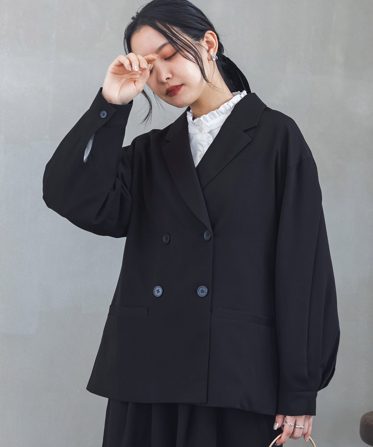 立体的なボリューム袖で存在感を引き出す、主役級ジャケット。パターンにこだわった美しいダブルテーラードラインと、シャープなカフスデザインでモードな印象に。あえて短めに仕上げた丈感が抜け感とスタイルアップを同時に叶えてくれます◎