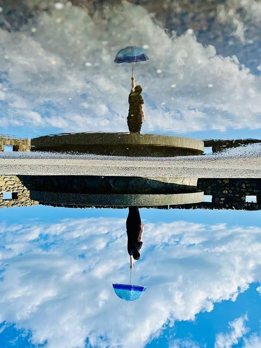 水面に写った傘と空のコントラストがとてもきれいです…! 一見下が水面かと思いきや、逆になっているのも魅力的で引き込まれました!《青森の海》の傘が青空の風景にマッチしているのも素敵です!!素敵な写真をありがとうございます