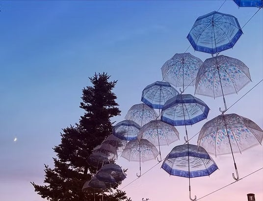 一日の中でひと時しか見られない時間帯の空と津軽びいどろ傘の模様の相性がとても良く、美しさとはかなさを感じました。 構図のバランスもきれいで惹かれました!