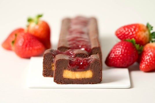 中央にはカスタードクリームを合わせ、苺ジャムとチョコレートの味わいのバランスを整えています。このカスタードクリームには、ミシュラン星付きレストランにも認められる埼玉県の養鶏農場「田中農場」のブランド卵「宝玉卵」を使用。「宝玉卵」は、通常は廃棄されるMinimalのカカオの外皮〈カカオハスク〉を鶏の餌として再利用する、アップサイクルな取り組みから生まれた卵です。