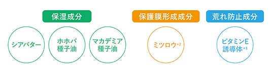 POINT3 植物由来保湿成分*¹と肌荒れ防止成分*³配合で唇を保湿