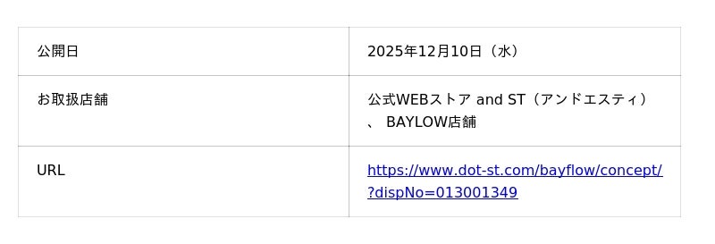 <公式WEBストア and ST(アンドエスティ)> https://www.dot-st.com/bayflow/