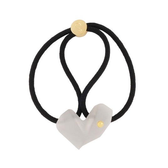 <THE HAIR BAR TOKYO>を象徴するフロスティング ハート ジェムポニー待望のフロスティング(マット)タイプが登場しました。これまでの光沢仕上げとは一線を画す、すりガラスのように柔らかく溶け込むニュアンスが魅力です。輝きを抑えたパウダリーなテクスチャーが、大胆なファセットをもつハートモチーフをいっそう際立たせ、スタイルに新鮮で洗練された存在感を添えます。シンプルなポニーテールはもちろん、同シリーズのヘアピンやMサイズポニーとのレイヤードによるアレンジもおすすめ。日常の装いを上品に印象付けてくれるアイテムです。テクニックを必要としないので、ギフトとしても喜ばれるアイテムです。