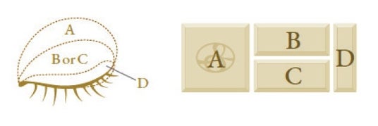 ブラシにAをとり、上まぶた全体に広げます。