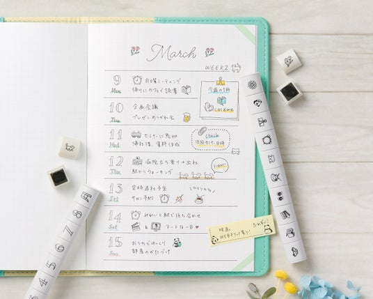 ・nototo 10 専用スタンプ 初登場10個のミニスタンプをひとつにまとめたスティック型スタンプ「nototo 10」。今回の文具女子博2025では、来春新たに発売するイラスト印面3個と補充インキがセットになった「nototo 10専用スタンプ」全12種類を販売します。また、文具女子博限定で新しい36個のイラスト印面の中から、お好きな印面10個を選んでオリジナルのnototo 10が作れるnototo 10バイキングを実施します。
