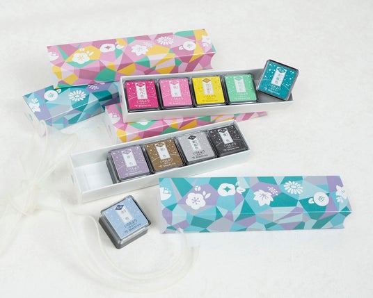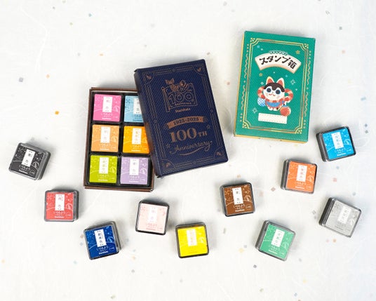 ・いろもよう わらべ/紙箱セット 限定オリジナルボックススタンプアート用スタンプパッド「いろもよう わらべ」から、お好みの色を6点選んで購入いただくと、オリジナルボックスを無料でお付けする「いろもよう わらべ紙箱セット」を数量限定でご用意しました。オリジナルボックスは、張子人形“犬張子(いぬはりこ)”とシヤチハタの創業100周年をモチーフにした新デザインの2種類をご用意しています。