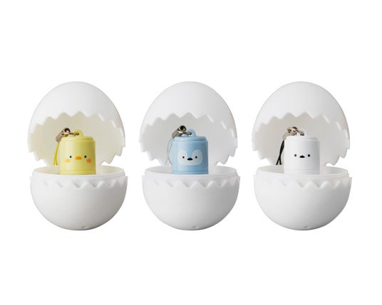 ・プチネーム Animal Egg 初登場たまご型のケースに入った鳥をモチーフにした可愛らしいフォルムに、鳥のイラスト入りのオリジナル印面が作れるネーム印「プチネーム Animal Egg」。種類は、ひよこ、ペンギン、シマエナガの3種類。印面は、氏名のみの他に9種類のイラスト入り印面から選べます。