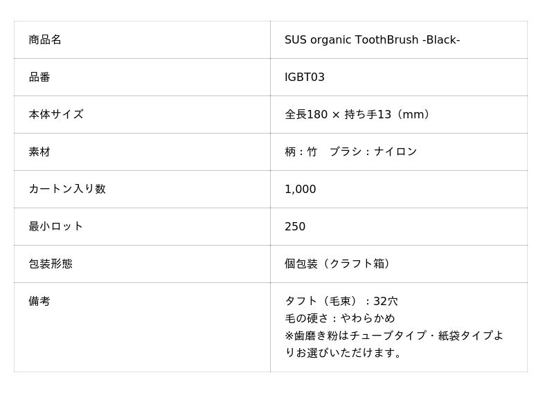 ・SUS organic ToothBrush -Black-(竹歯ブラシ (黒))[IGBT03]