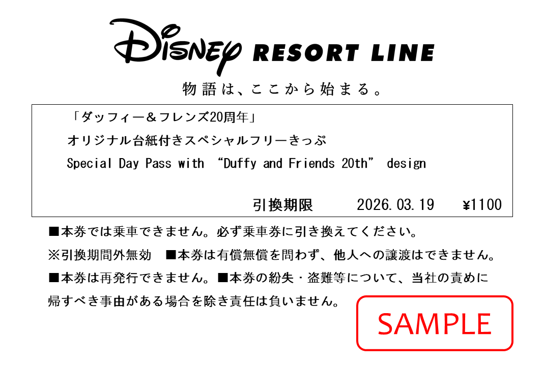 さらに、「ダッフィー&フレンズ20周年」 オリジナル台紙付きスペシャルフリーきっぷを2026年1月8日(木)から35,000枚限定で販売します。