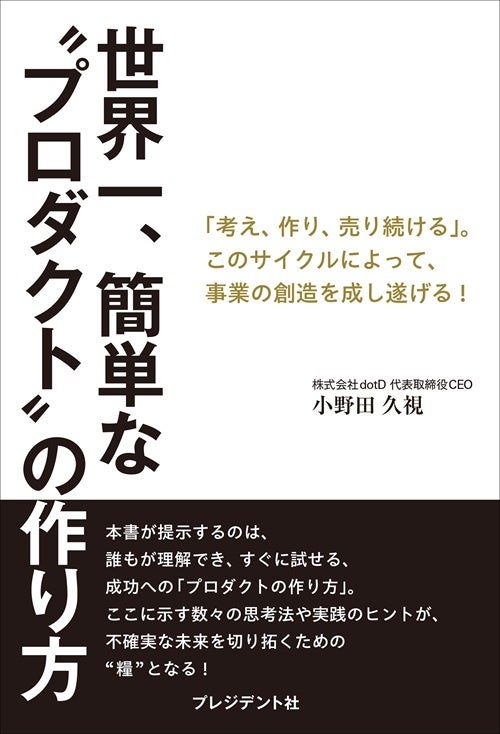 株式会社dotD(本社:東京都港区、代表取締役:小野田久視)は、2025年11月14日に初となる書籍『世界一、簡単な“プロダクト”の作り方』をプレジデント社より出版しました。本書では、dotDおよび代表小野田が100社以上にわたる多種多様なプロダクトやサービスの立ち上げに携わる中で得たノウハウをシンプルに体系化し、実践的な事業創造フレームワーク「MORPHY MODEL」として解説しています。