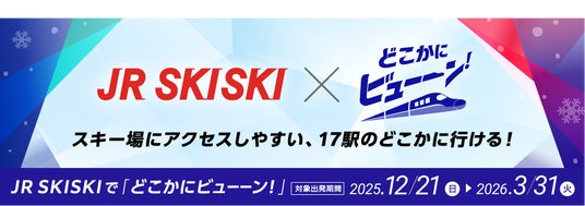 「どこかにビューーン!」の特別企画として、「JR SKISKIで『どこかにビューーン!』」を実施します。期間限定で、行き先候補をスキー場にアクセスしやすい17駅に限定してご利用いただけます。