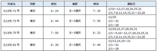 【ガーラ湯沢駅行きの東京発主な下り直通列車】