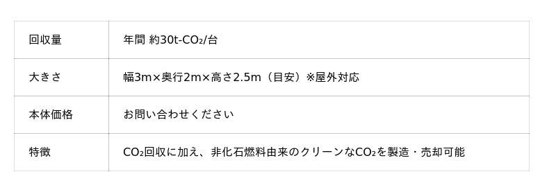 事業内容:DAC装置の開発・販売、CO2吸収剤の研究と商用化、クリーンCO2の販売など