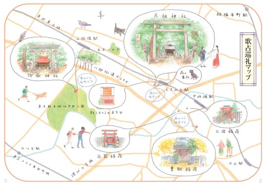 この歌占には江戸時代につくられた「天岩戸開」絵馬(天祖神社蔵、板橋区登録文化財)に描かれた神々や狛狼像(御嶽神社蔵、板橋区登録文化財)も含まれており、日本古来の信仰に基づく地域の文化財を現代的に活用する取り組みです。室町時代~江戸時代に行われていた作法通り、呪歌を唱え、弓の弦に結びつけられた和歌の短冊を選ぶユニークさも相まって、これまで多くのメディアで取り上げられています。