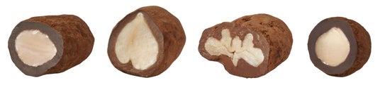 (左から、アーモンド、ヘーゼルナッツ、ペカンナッツ、マカダミアナッツ)