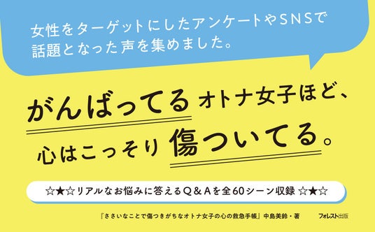 フォレスト出版株式会社(所在地:東京都新宿区、代表取締役:太田 宏)は、『ささいなことで傷つきがちなオトナ女子の心の救急手帳』(中島 美鈴・著)を2025年12月18日(木)より順次発売します。本書は、放っておくとつらくなるオトナ女子の心の痛みに、即効で寄り添う一冊です。