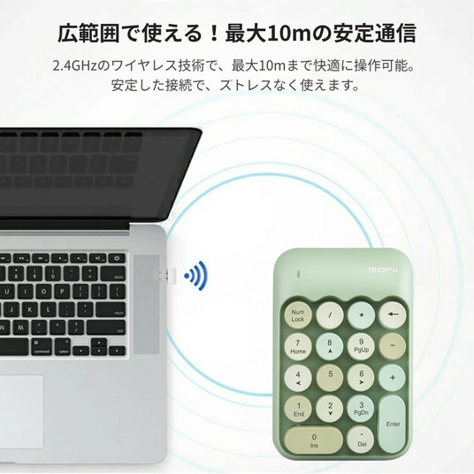 最大10mの安定通信2.4GHzのワイヤレス技術で、 最大10mまで快適に操作可能。