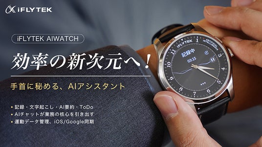 音声AI分野におけるイノベーションを長年牽引しているiFLYTEK(本社:中国・合肥 )の日本法人、iFLYTEK JAPAN AI SOLUTIONS株式会社はこの度、仕事の効率化に役立つ主要AIモデル4種類と、ビジネスシーンに相応しい品格あるデザインを融合した、ビジネスパーソン向けAIウォッチ「iFLYTEK AIWATCH」の先行予約販売をアタラシイものや体験の応援購入サービス「Makuake」にて、12月18日(木曜日)11時より開始いたしました。