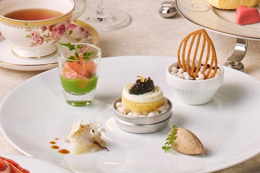 19階ラウンジ「リバーヘッド」の「プティフレンチ・アフタヌーンティー ~フレーズ~」は、旬のいちごとコク深いショコラに3種類のお茶の香りを加えて繊細に仕上げたプチスイーツと、キャビアやオマール海老など豪華食材を用いたフレンチセイボリーをご用意します。乾杯を彩るスパークリングワインで始まり、さらに3時間のフリーフロードリンクで、ゆったりと贅沢な午後のひとときをお過ごしいただけます。3日かけて仕上げる抹茶ショコラのフレジェ、ほうじ茶の香ばしさを閉じ込めたエクレア、アールグレイ香るミルフィーユといった個性豊かなプチスイーツで、洗練された和と洋の融合をお楽しみください。また、瑞々しいいちごを主役にした「パフェ・ド・ショートケーキ」は、別添えの濃厚チョコレートドリンクで味わいの変化も楽しめる工夫を凝らし、飽きることなく最後のひと口までご堪能いただけます。