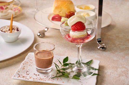 1階「ティーラウンジ」で提供する「アフタヌーンティーセット いちご&ショコラ」は、リバーヘッドと同様のプチスイーツ3種類と「パフェ・ド・ショートケーキ」、「茶美豚とポルチー二茸のバーガー」などミニサイズながらこだわりのセイボリーとお好きなドリンク2杯をお楽しみいただけます。プチスイーツ3種とドリンク1杯がセットになった「スイーツセット」もご用意しており、お気軽にご利用いただけます。