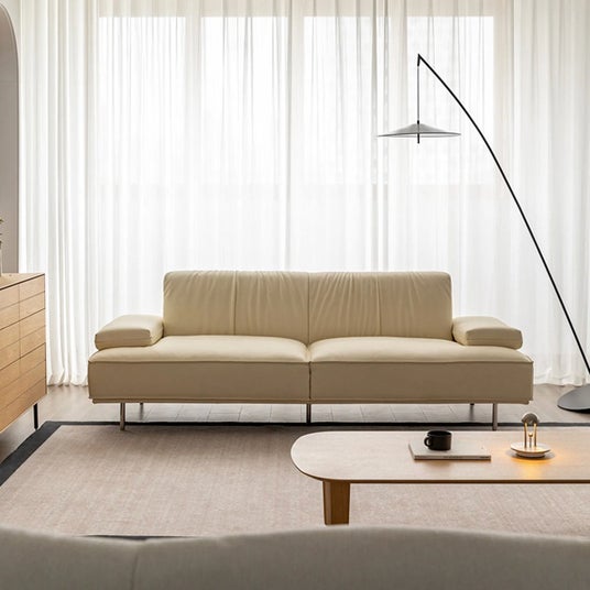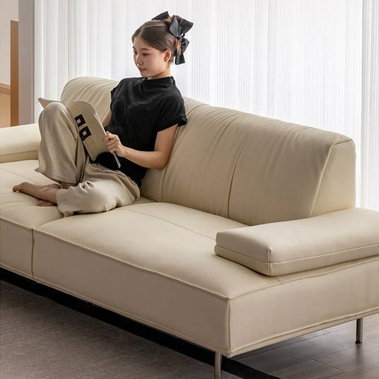 総本革を贅沢に使用した高級ソファ。65cmの広めの座面と4層クッション構造で、柔らかさとサポート性を両立し、長時間でも快適に過ごせます。ロシア産パイン材の頑丈なフレームや静音スプリングなど高耐久設計で、毎日の使用にも安心。どんなインテリアにも調和するモダンな一台です。