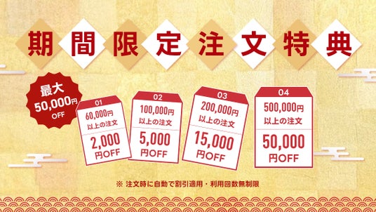 ・50万円以上のご注文 → 50,000円OFF
