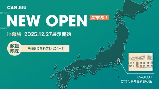 2025年12月27日(土)より、関東初となるCAGUUUの展示・販売スペースが、千葉県・幕張の家具店にオープンいたします。実際に「見て・触れて・体感」できるリアルな空間で、CAGUUUの世界観をぜひお楽しみください。