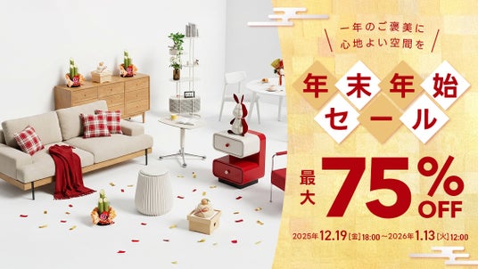 本セールでは、人気家具が最大70%OFFとなるほか、「年末大感謝祭」や「新春初売りセール」での自動割引を併用することで最大75%OFFでお買い求めいただける、大変お得な内容となっております。さらに期間中は、ポイント5倍キャンペーンも同時開催。
