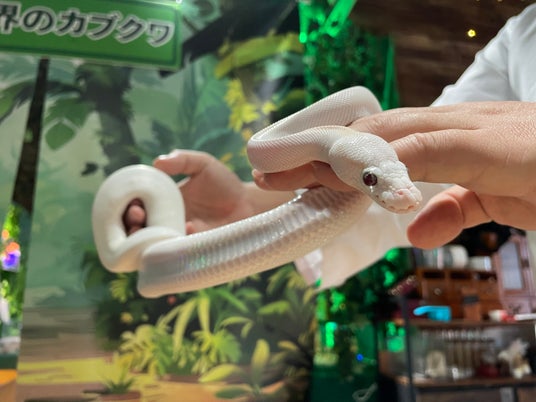 昨年の厄を落とし、新年を清める白蛇。触れた人には福が訪れるかも?!