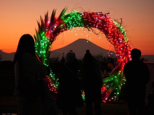 期間限定で『開運爆上がリース』が園内に登場!明るい時間帯はくっきり映る富士山をリースの真ん中に写真撮影ができ、夕方の時間帯はイルミネーションが点灯し、富士山の影をリース真ん中に、美しい写真を残すことができます。