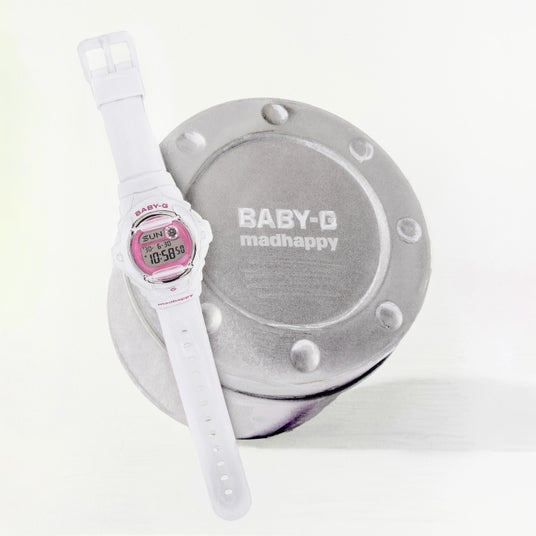 本作は、レトロフューチャーなデザインで知られる「BG-169」をベースにした特別仕様モデル。BABY-Gが誇るタフネスと自己表現の精神を軸に、Madhappyの“楽観主義”という視点で再解釈し、ノスタルジーと前進するエネルギーの融合を表現しています。