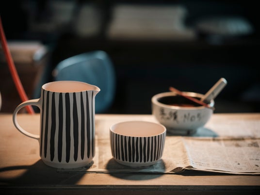 今回発売されるマーガレット・ハウエルがスペシャルオーダーしたテーブルウエアには、形の美しさと、手に馴染むほどよい重さへのこだわりが込められています。軽すぎず重すぎない、日常に自然と寄り添う器で、玉木さんが長い時間をかけて育んだ美意識が、そのまま形となっています。澄んだ白と、深みのある呉須の青。静かで凛とした佇まいが余白のある美しさを湛えており、洗練されたデザインと、丁寧な手仕事から生まれるぬくもりが魅力のテーブルウエアです。