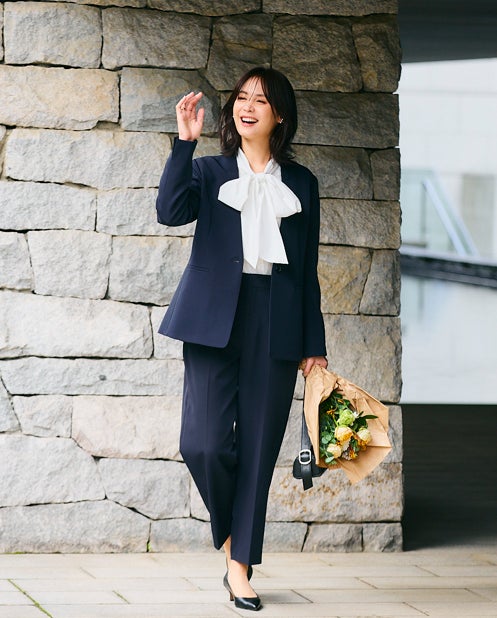 特設サイトでは、定番のAラインジャケットスーツの他、より美しく快適な着心地を求めたジレやペプラムブラウスのセットアップスーツなどの新作もご紹介。上下2点セットで1万円台のスーツの他、セレモニーアイテムとして最適な3千円台のブラウスも展開しています。