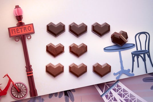 毎年人気の幾何学デザインが印象的なハート型ショコラ。