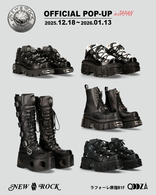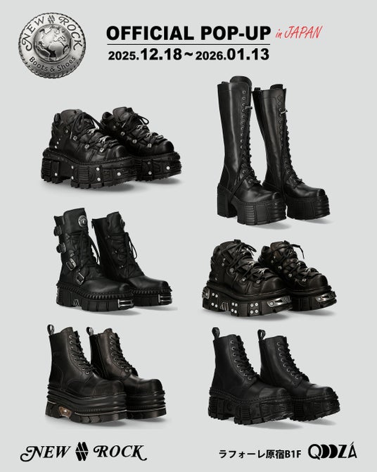 株式会社クリームは、ラフォーレ原宿B1.5Fのセレクトショップ「QOOZA」にて、スペイン発のシューズブランド「NEW ROCK(ニューロック)」のPOP UP STOREを2025年12月18日(木)~2026年1月13日(火)の期間限定で開催いたします。
