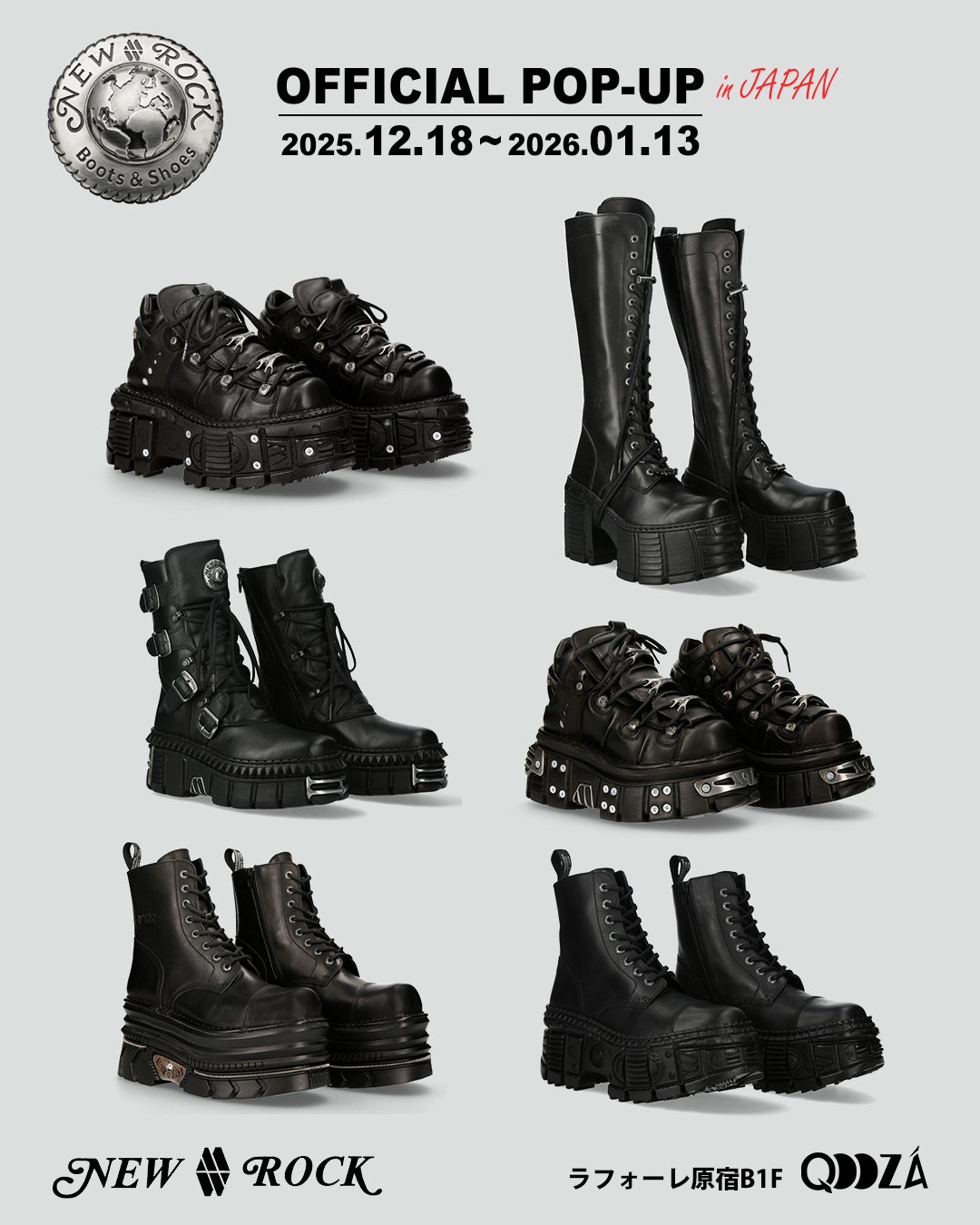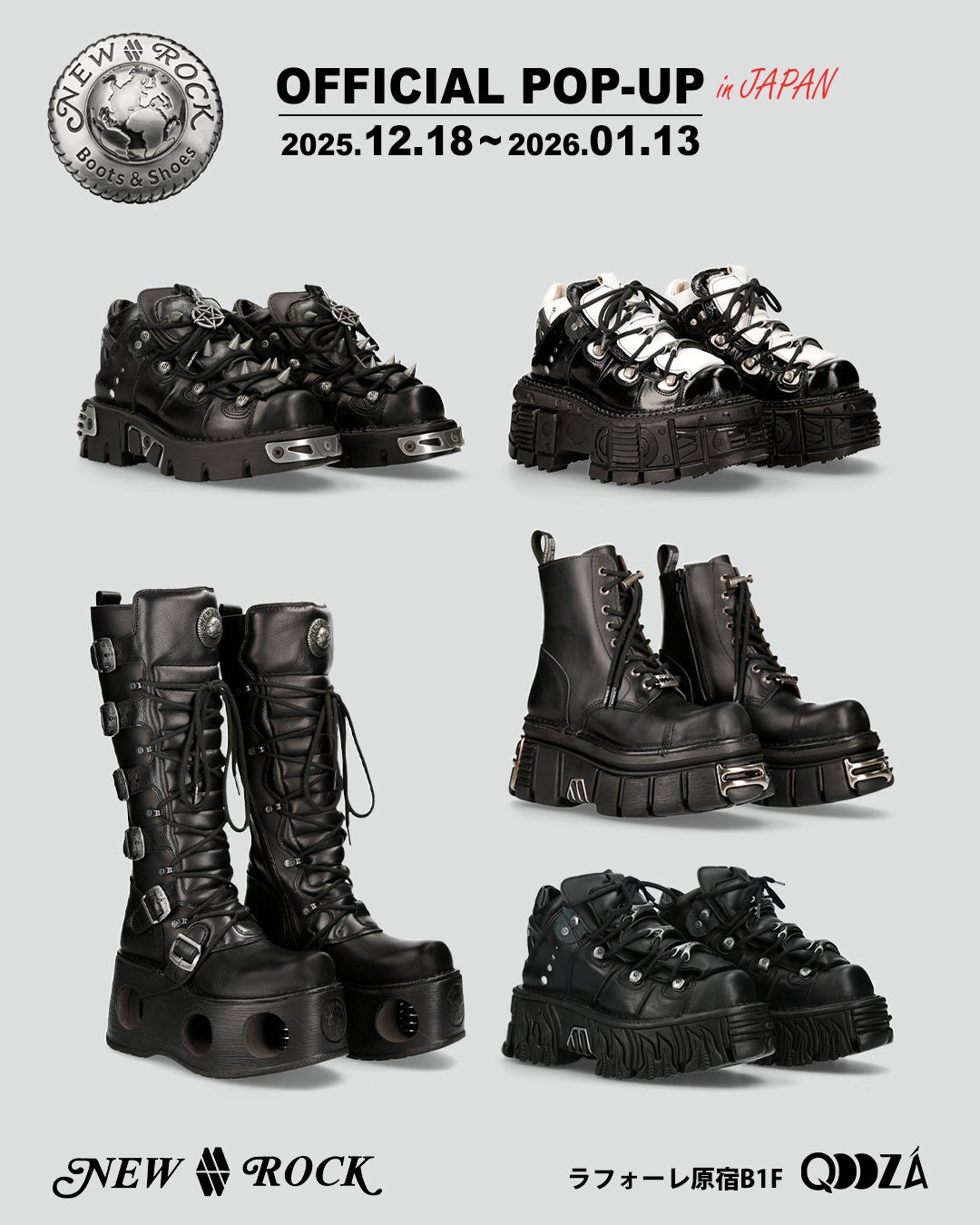■Concept: ゴシック、パンク、サイバー、そしてダークファッション。 世界中で人気を誇る足元から支え続けてきたNEW ROCKの重厚なDNAが、ラフォーレ原宿「QOOZA」でポップアップを開催。
