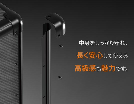 カーボン×アルミ合金フレームのハイブリッドスーツケース。