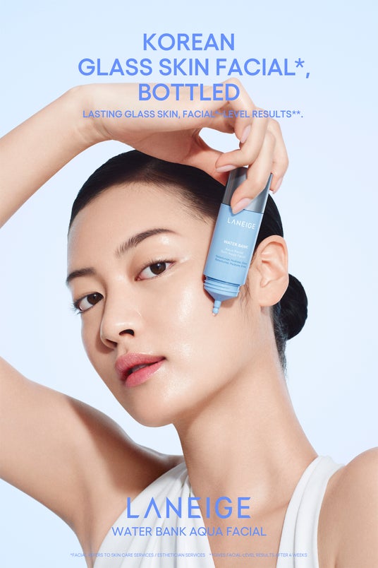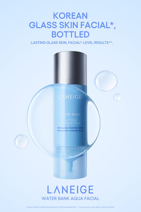 世界的に広がる“日常に取り入れる専門ケア”の潮流を背景に、LANEIGEが提案するのは、自宅で叶える本格フェイシャルケア。「ウォーターバンク アクアフェイシャル」は、韓国の肌管理メソッドを1本にし、毎日のホームケアに取り入れやすいマイルド処方にこだわって開発した美容液です。古い角質をやさしく取り除きながら、うるおいを集中的にチャージ。使うたびに、ガラスのような透明感ある水光肌*¹ へ導きます。