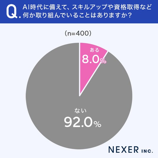 AI時代に備えてスキルアップに取り組んでいる層は、わずか8%で、9割以上が具体的な行動を起こしていないことが判明しました。