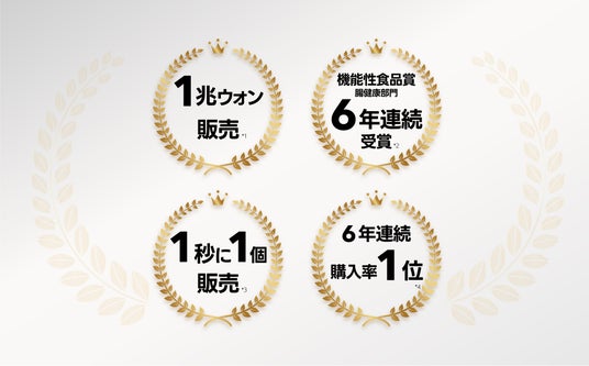 また、6年連続で「韓国機能性食品賞・腸健康部門」*²を受賞しており、その機能性と品質の高さが評価されています。さらに、1秒に1個が売れる*³という驚異的な販売実績を記録し、6年連続で消費者購入率No.1*⁴を維持するなど、韓国の健康機能食品市場を牽引する存在です。